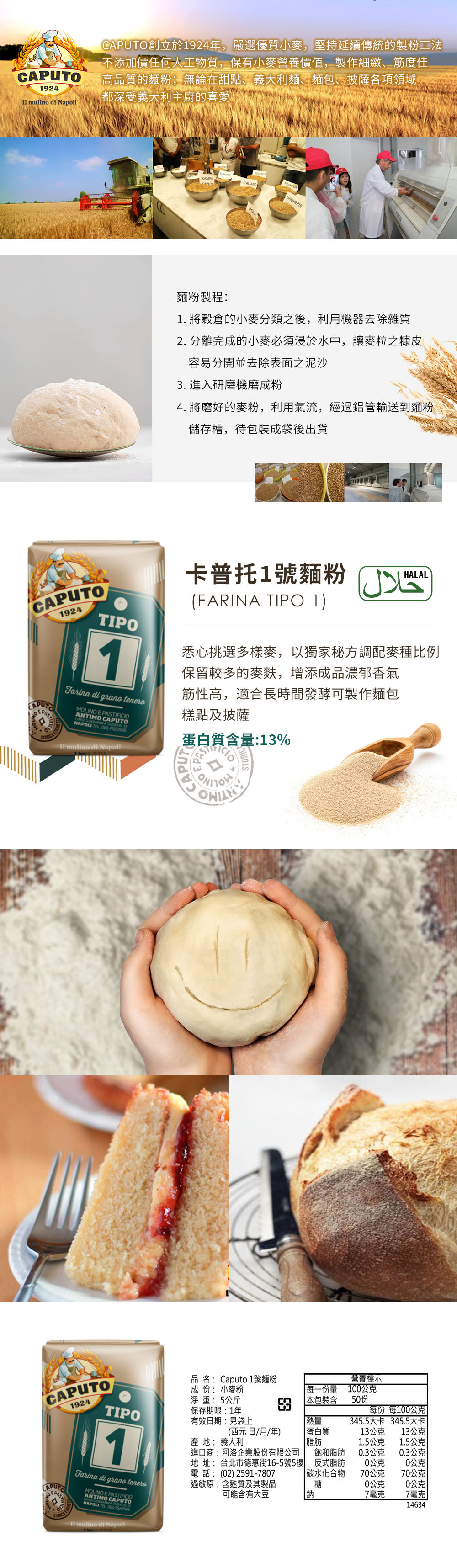 ◆蛋白質含量約 13%(台灣麵粉筋度分類屬「高筋」)