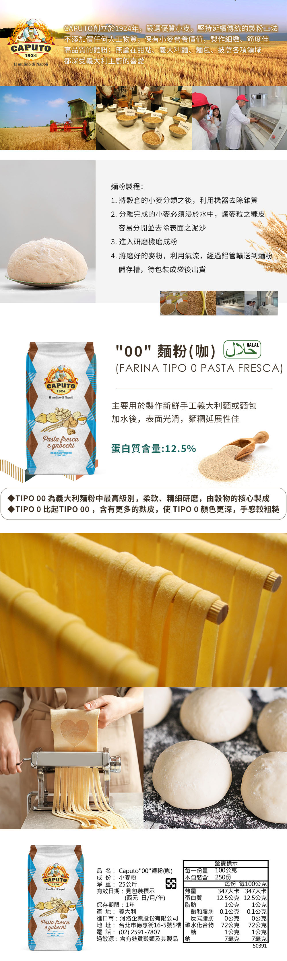 ◆主要用於製作新鮮手工義大利麵或麵包,加水後,表面光滑,麵糰延展性佳