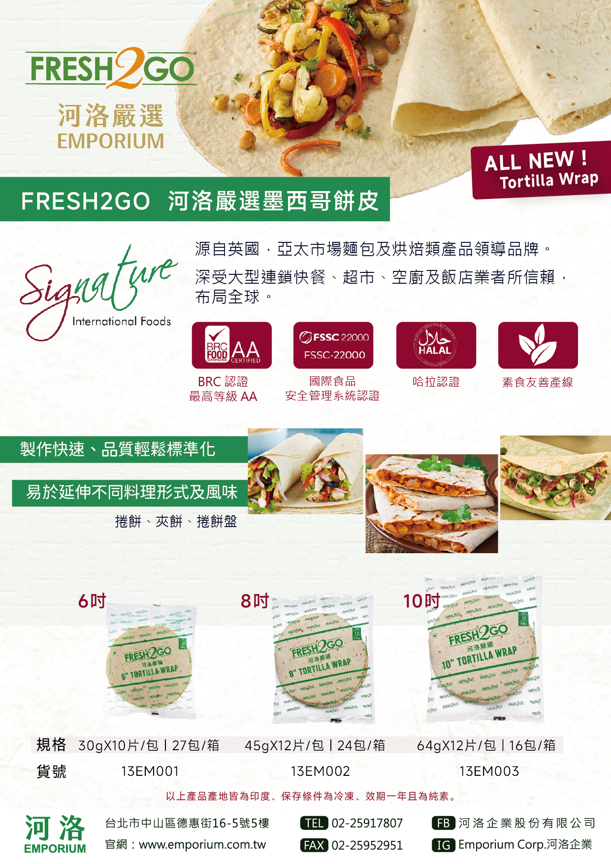 品名:Fresh2GO河洛嚴選墨西哥餅皮6吋