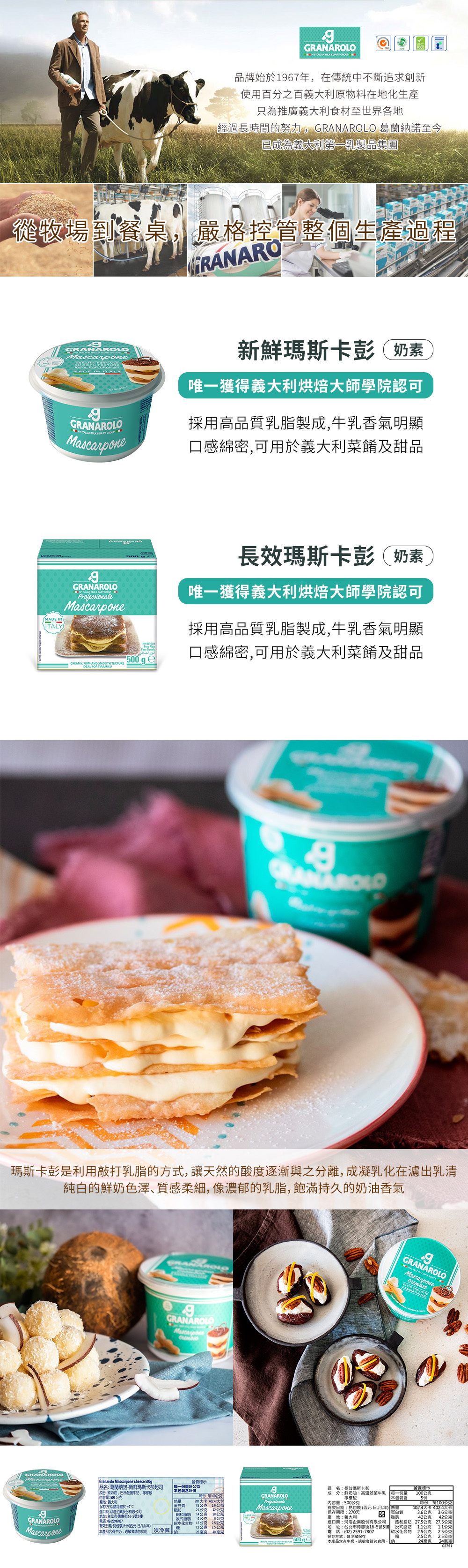 ◆特別採用高科技殺菌技術,延長馬斯卡彭的效期,味道與新鮮的無明顯差異
